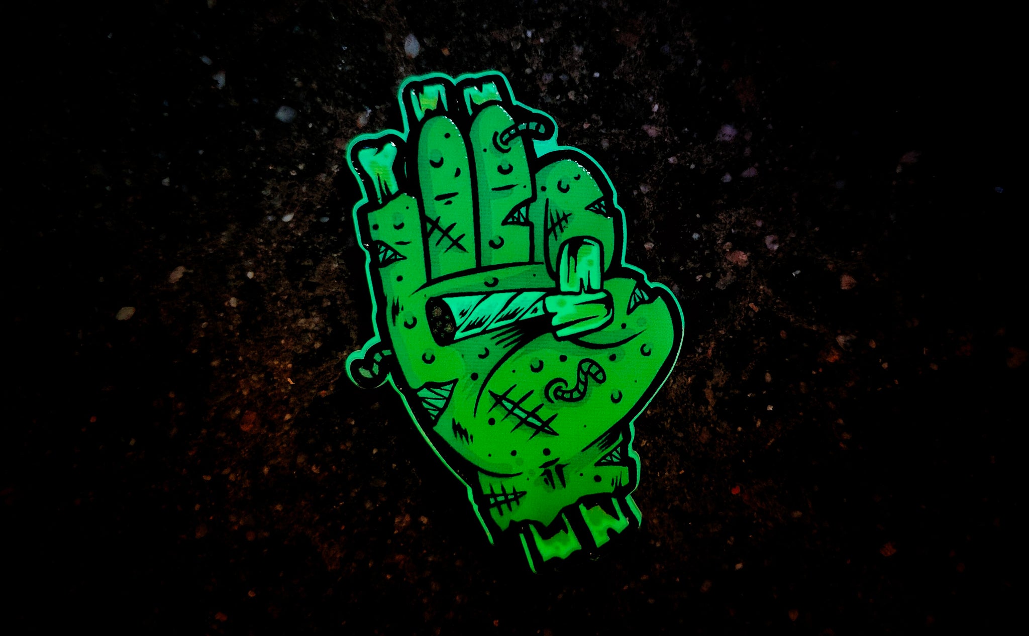 3", velcro backed, full color and depth acrylic details with hologlow.